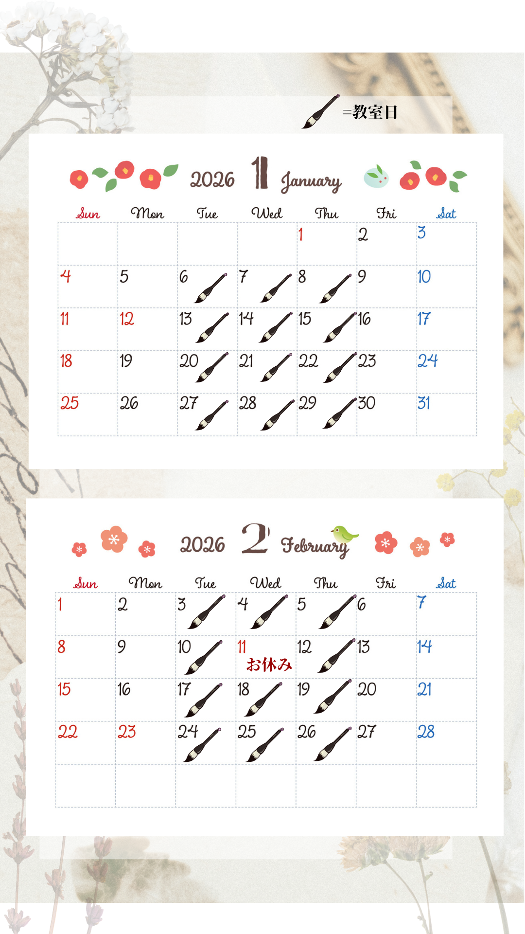 ・12月 ━ 学校の冬休み課題の書き初め指導しますのでご持参下さい。
